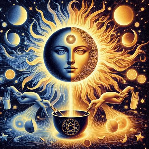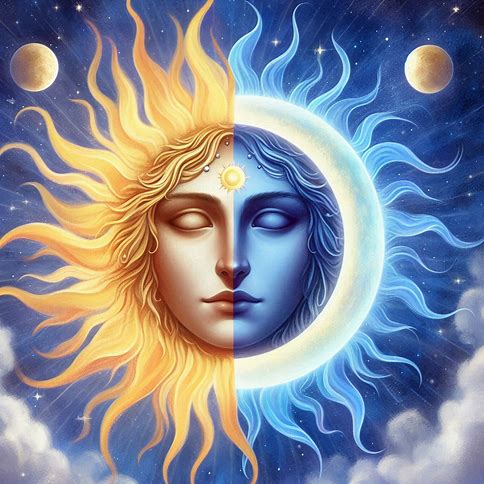 The sun and moon were essential symbols in this divine balance, each representing the merging of opposites within the creator deity. The sun, with its radiant power and life-giving warmth, was often seen as the masculine aspect, embodying vitality, order, and cosmic law. The moon, gentle and mysterious, was the feminine counterpart, representing intuition, renewal, and the cyclical rhythms of nature. Together, these celestial bodies symbolized the androgynous essence of the divine, each half completing the other in a harmonious dance of day and night, masculine and feminine.In medieval Christian and Islamic mysticism, the sun and moon were often seen as symbols of Christ and the Virgin, or Allah’s dual qualities of majesty and beauty, reflecting the fusion of male and female principles in divine unity. In Eastern traditions, similar symbols existed; for instance, in Chinese cosmology, the Tao was seen as the ultimate androgynous source from which Yin (moon, feminine) and Yang (sun, masculine) emerged, creating balance in the universe. Through this celestial symbolism, medieval civilizations celebrated an androgynous divine presence that sustained dynasties, ruled the earth, and harmonized the heavens, honoring a world where life was born of unity, not division, and governed by the eternal dance of complementary forces.