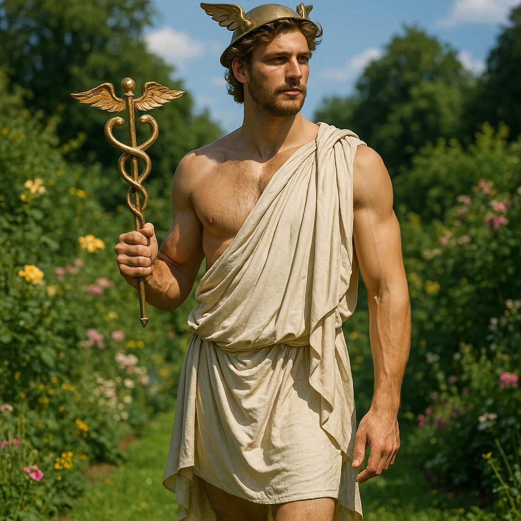 Hermes Consort of Androgynous Aphrodite hold Caduceous Serpent Symbolism