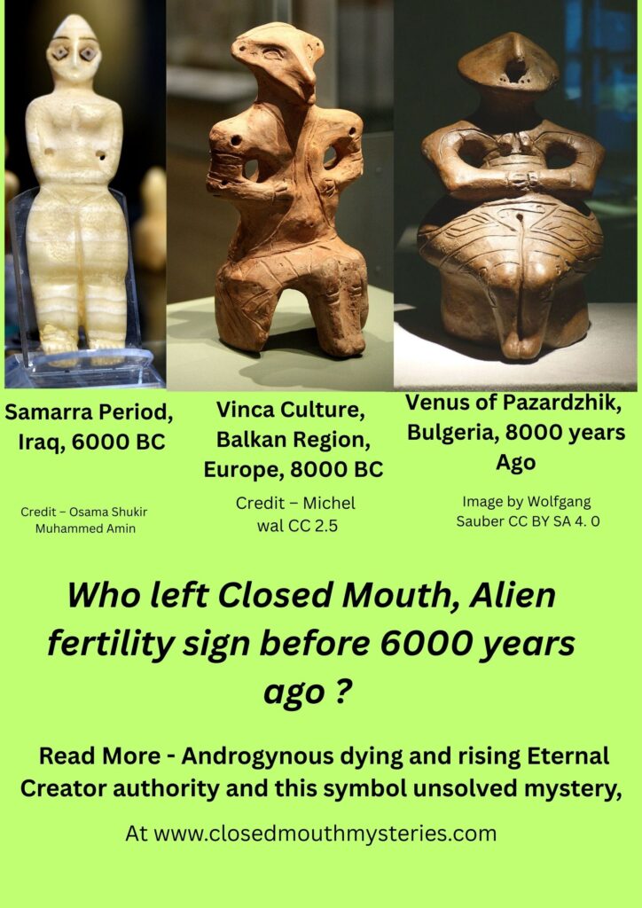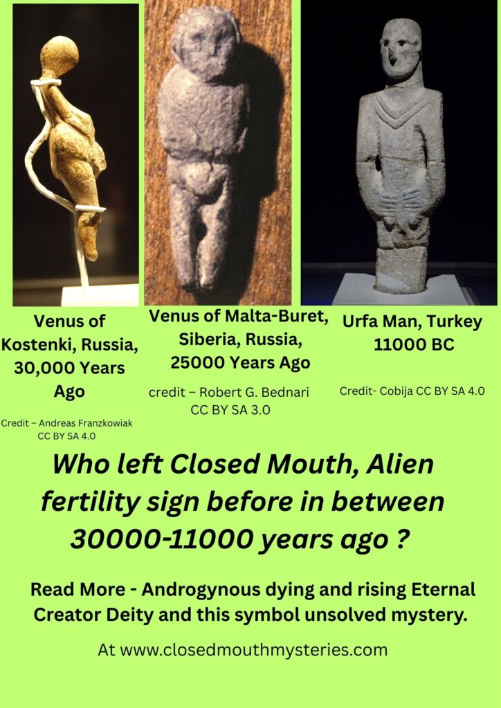 He also left similar Closed mouth, Alien, Fertility Sign Like other Androgynous Deity who taught knowledge of civilization in ancient times
