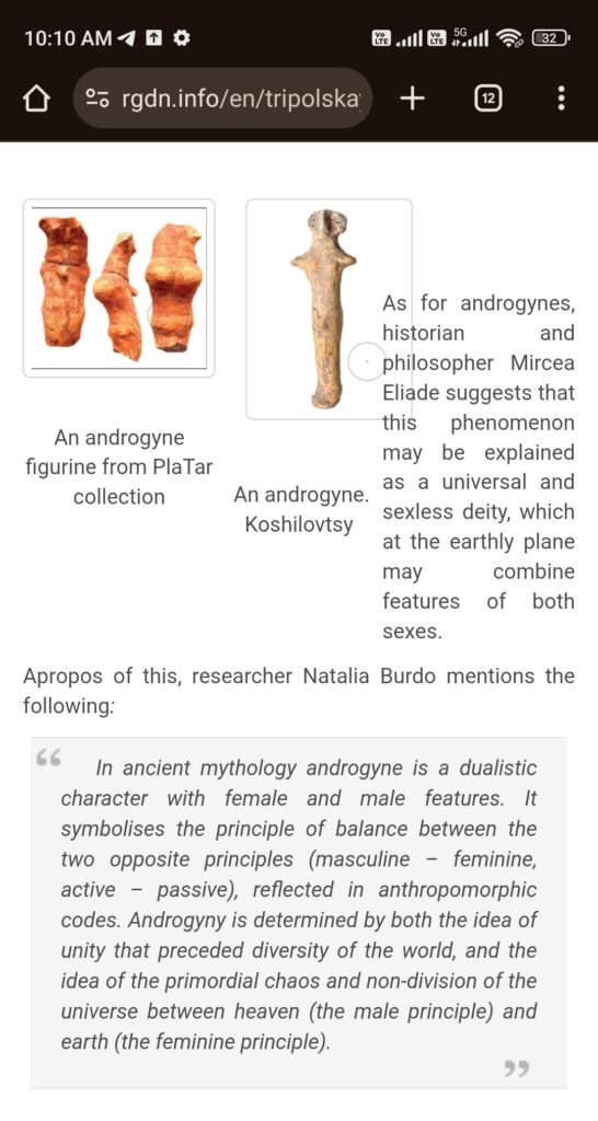 As for androgynes, historian and philosopher Mircea Eliade suggests that this phenomenon may be explained as a universal and sexless deity, which at the earthly plane may combine features of both sexes.