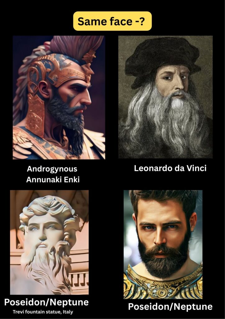 Match Leonardo Da Vinci’s face with Neptune consider Equivalent of Poseidon means Another name of Same Authority