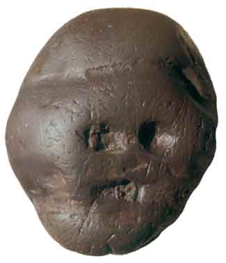 Some theories suggest that these are water-warned pebbles, because there is no scratch on them.So waterworn pebbles will remain in round shape, Cannot carved eyes, and do not make a crown on top of the head.