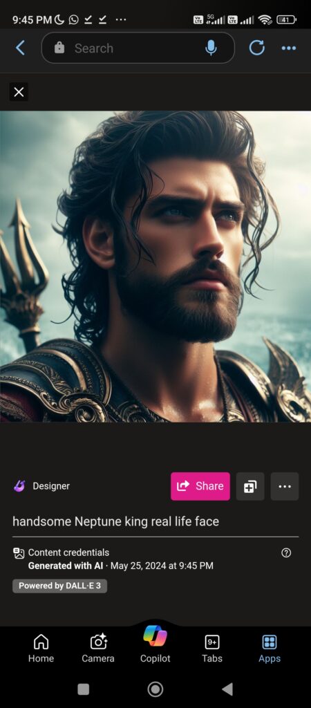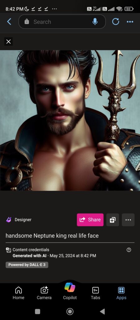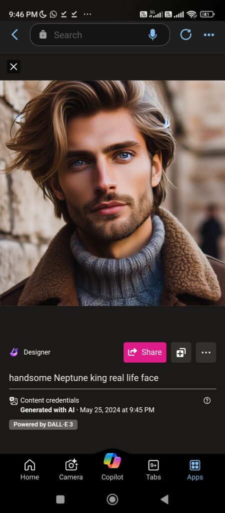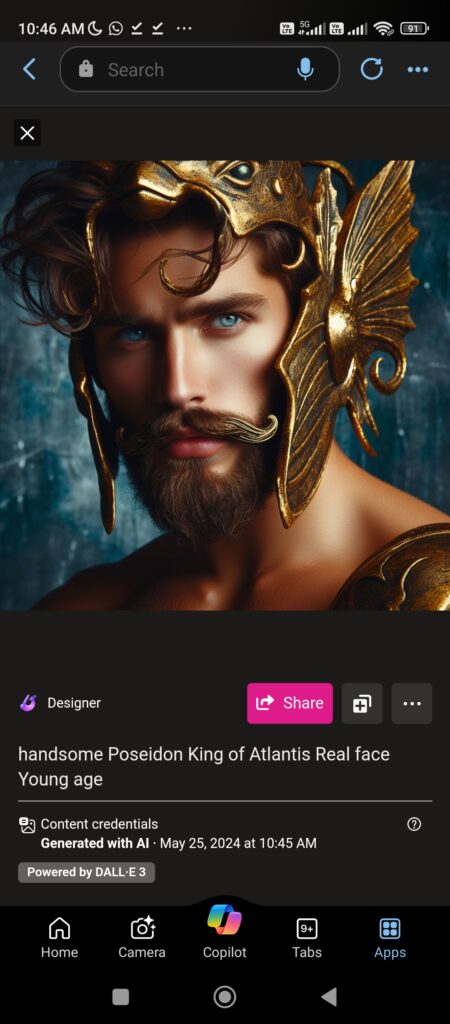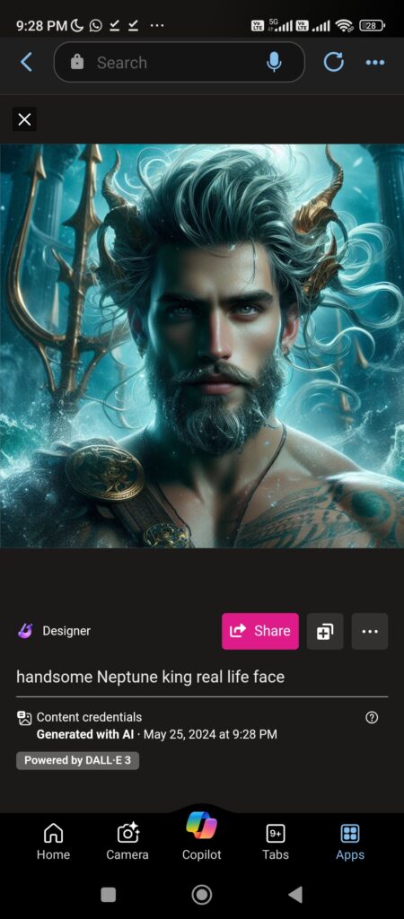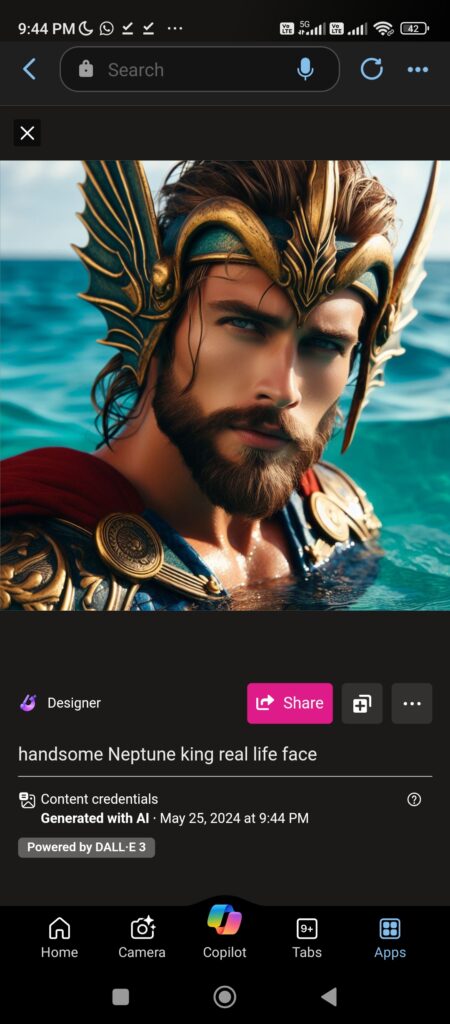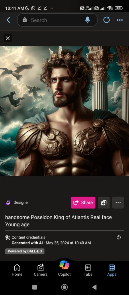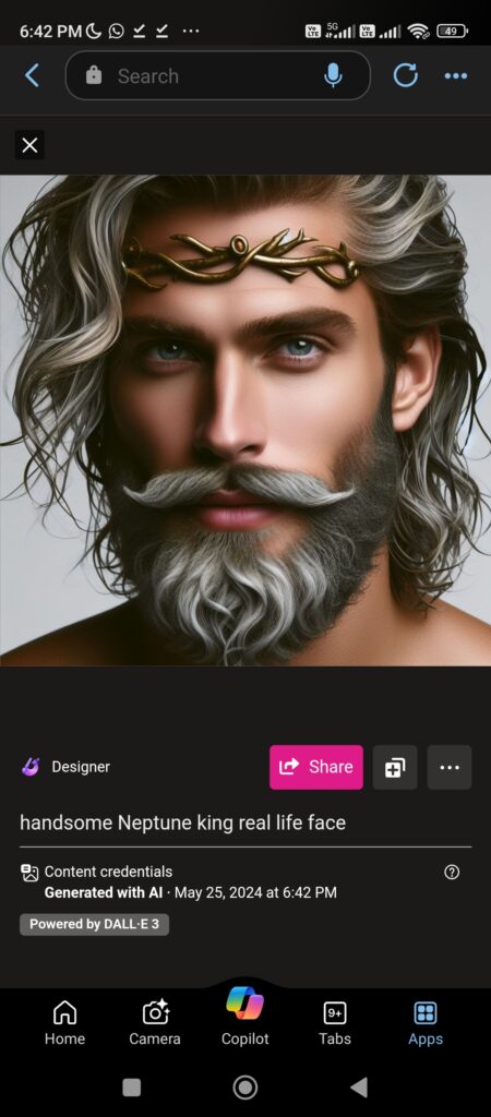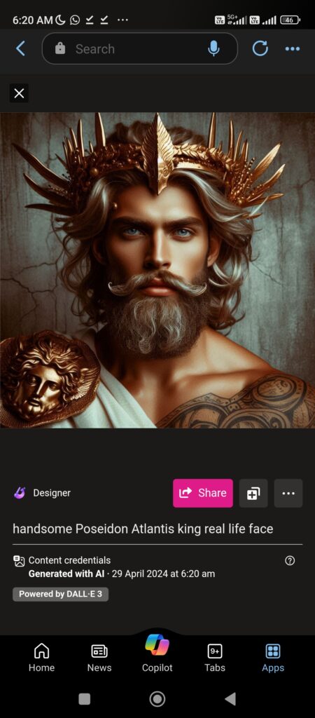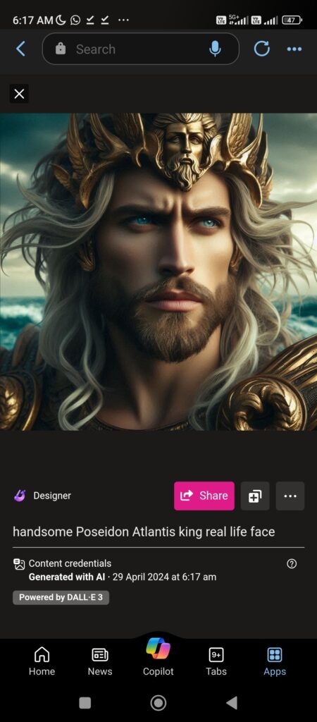 Poseidon /Neptune Face Reconstruction through Microsoft Bing AI software