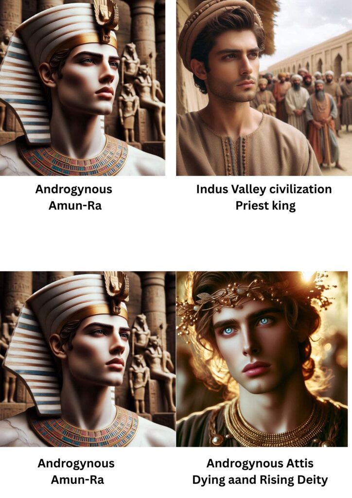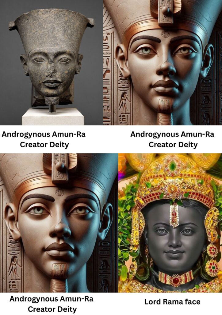 Conclusion – Was Creator Androgynous Amun-Ra same Androgynous Dying and Rising creator of civilizations Deity, As he was known as a Androgynous Creator Deity and as we see Androgynous dying and Rising authority holder person always called creator Deity in different ancient Civilization, as well as According to Bhagvad-Gita Verse 4.6, face of Androgynous Dying and Rising authority remains the same in every birth,