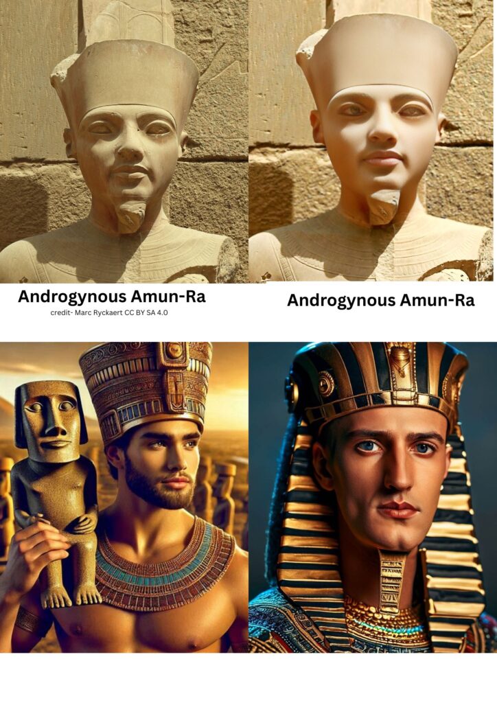 Unsolved Mystery– we ask to Microsoft Bing AI software to show real face of Androgynous Amun-Ra, so we got these results which is exactly similar to Other possible births of this Androgynous Authority, Yet this is Biggest Unsolved Spiritual Puzzle.
