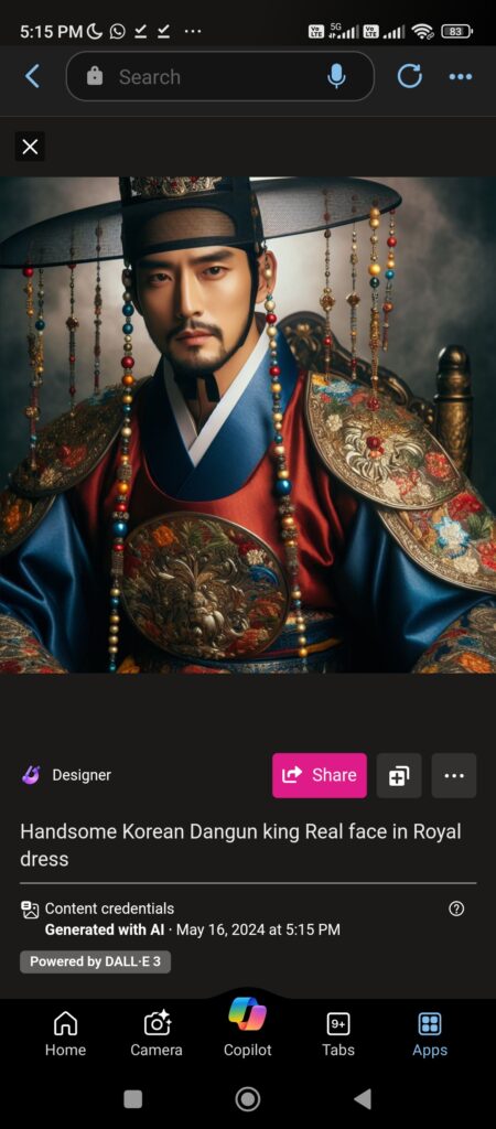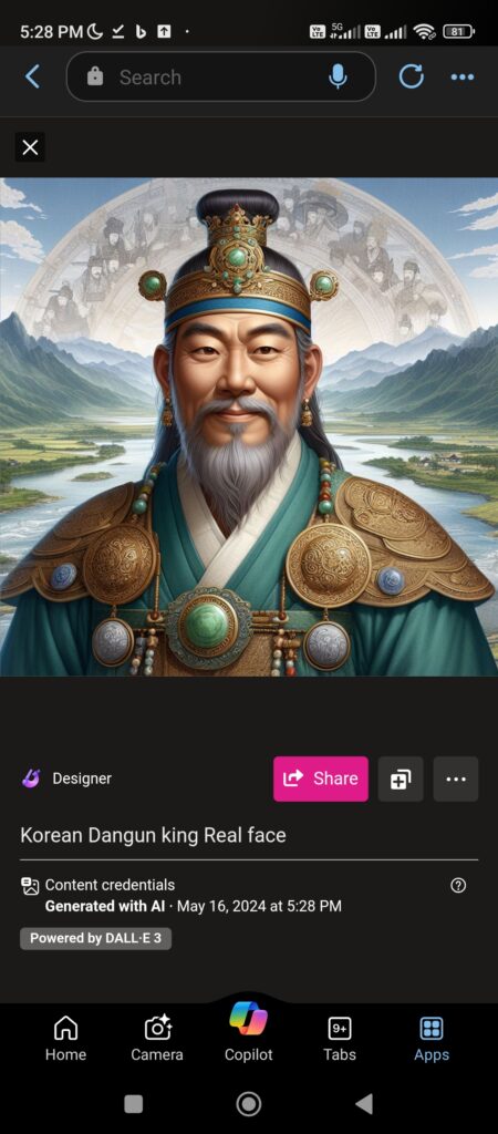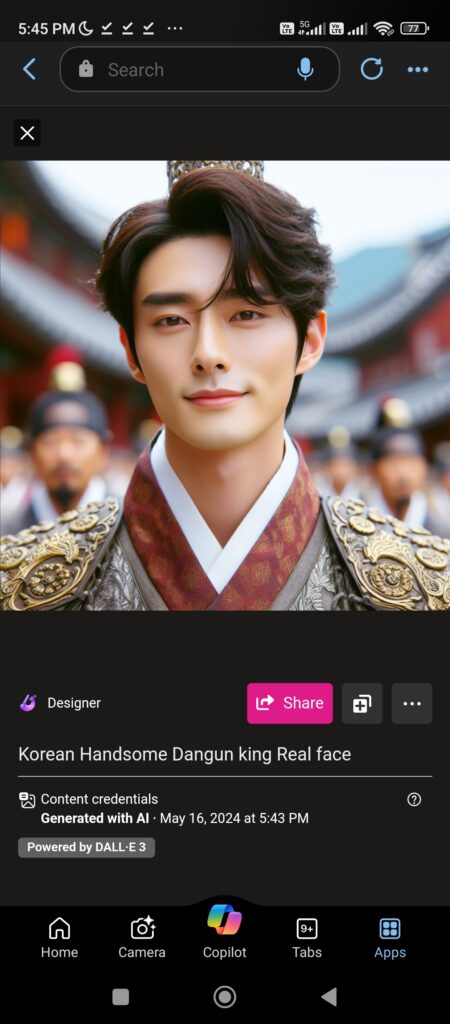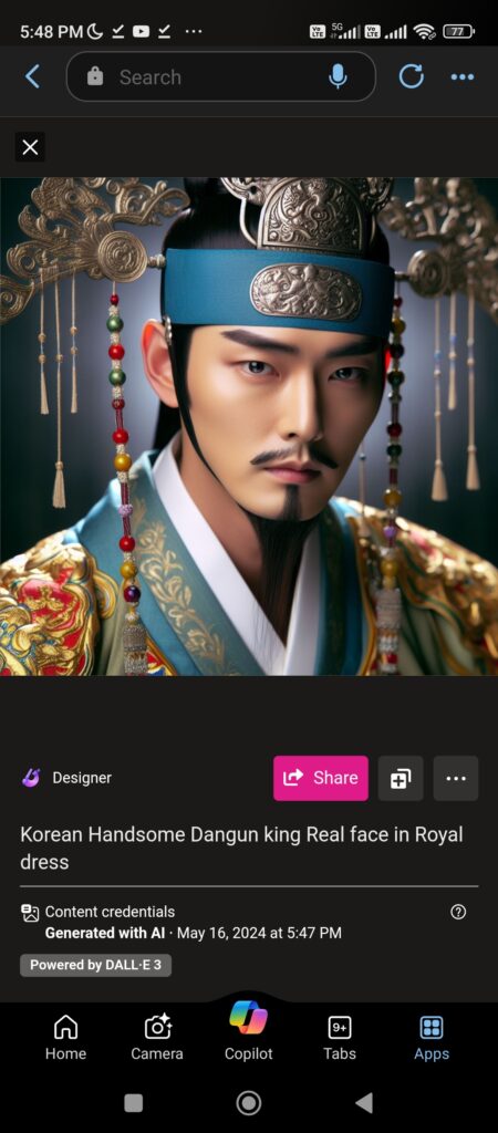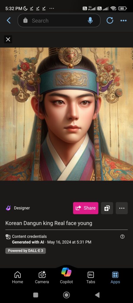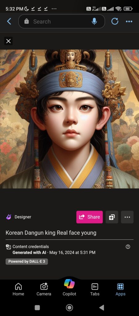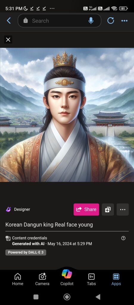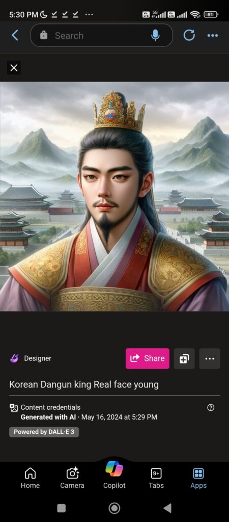 dangun face reconstruction through Microsoft Bing AI software
