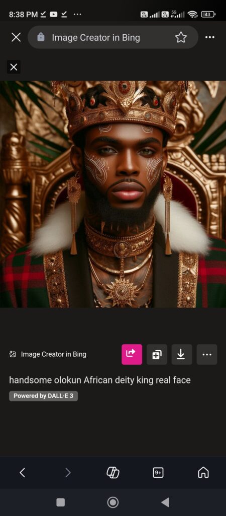 Olokun face Reconstruction Through Microsoft Bing AI software