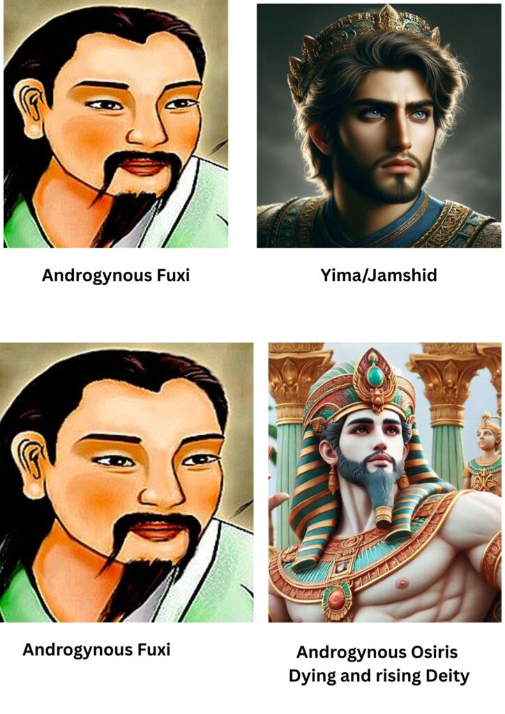 Unsolved mystery – was he the same androgynous dying and rising authority, responsible to restore civilization after natural calamities, as well as according to bhagavadgeeta verse 4.6 , Androgynous dying and rising authority face remains the same in every birth, and Face of fuxi also match with another possible birth of this androgynous dying and rising authority,