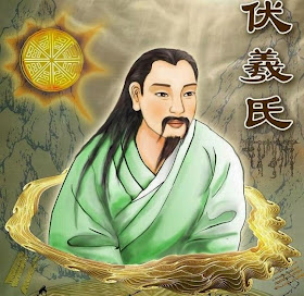 Fuxi or Fu Hsi is a cultural hero in Chinese legend and mythology who, along with his wife Nüwa, is credited with the creation of mankind and the invention of music, hunting, fishing, domestication, and cooking, as well as the Cangjie Chinese character writing system around 2000 BC. Fuxi was counted as the first of the three emperors at the beginning of China’s dynastic period.