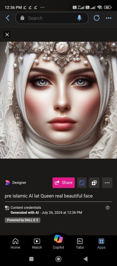 Queen Al-Lat Real Face Shown by Microsoft Bing AI Software