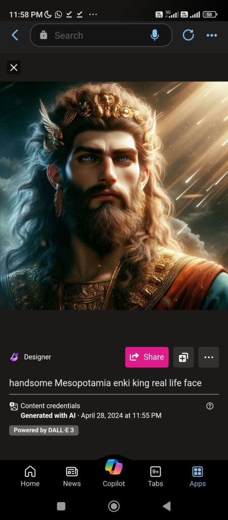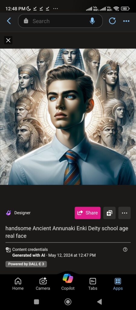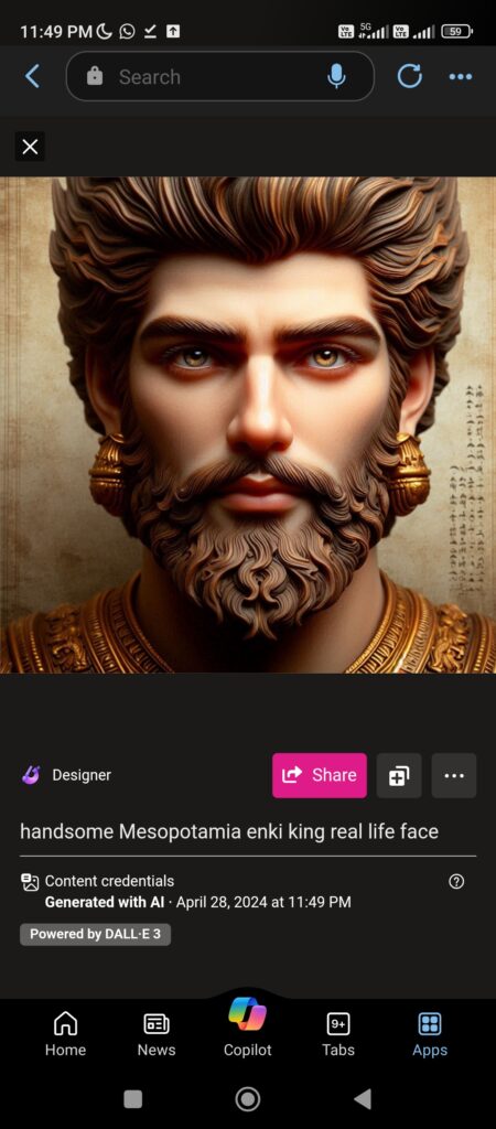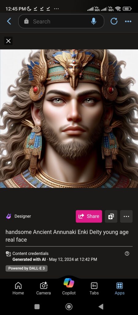 Annunaki Enki face Reconstruction through Microsoft Bing AI Software