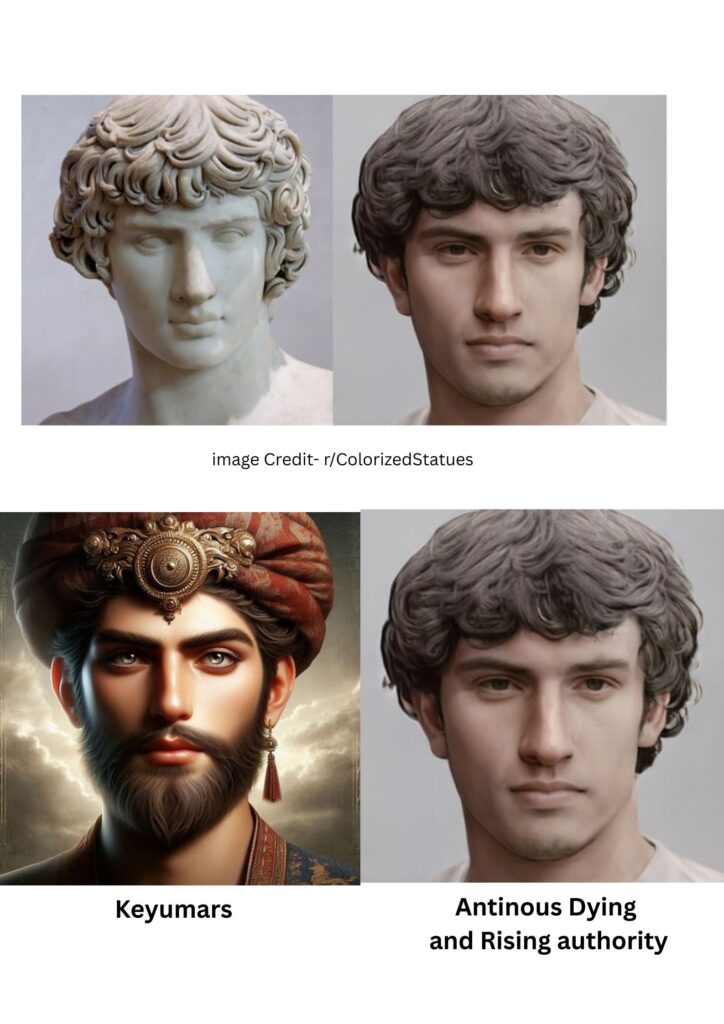 Unsolved Mystery – Keyumars face Match with Another Possible Births of this Creator of civilizations and Dynasty founder Androgynous Dying and Rising authority Mentioned in Indian vedic text, and Egyptian book of the dead.was he the same Androgynous dying and Rising authority, as he is also known as first Man,it is the Biggest unsolved ancient Mystery.