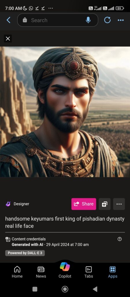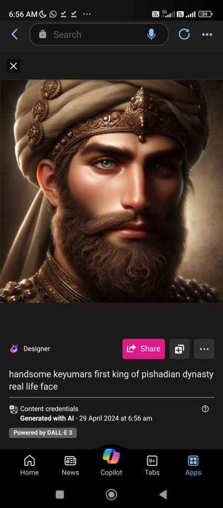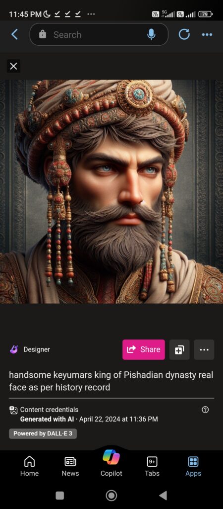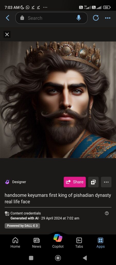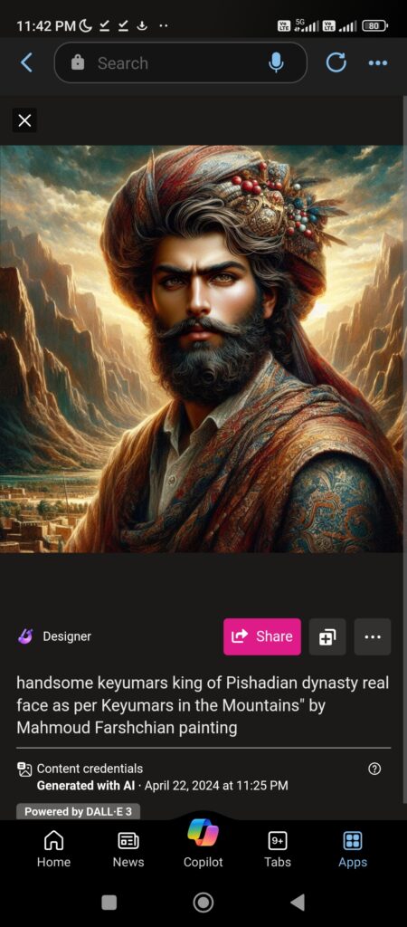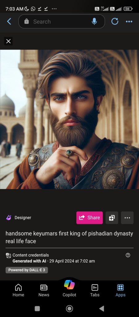 Keyumars Face Reconstruction through Microsoft Bing AI software