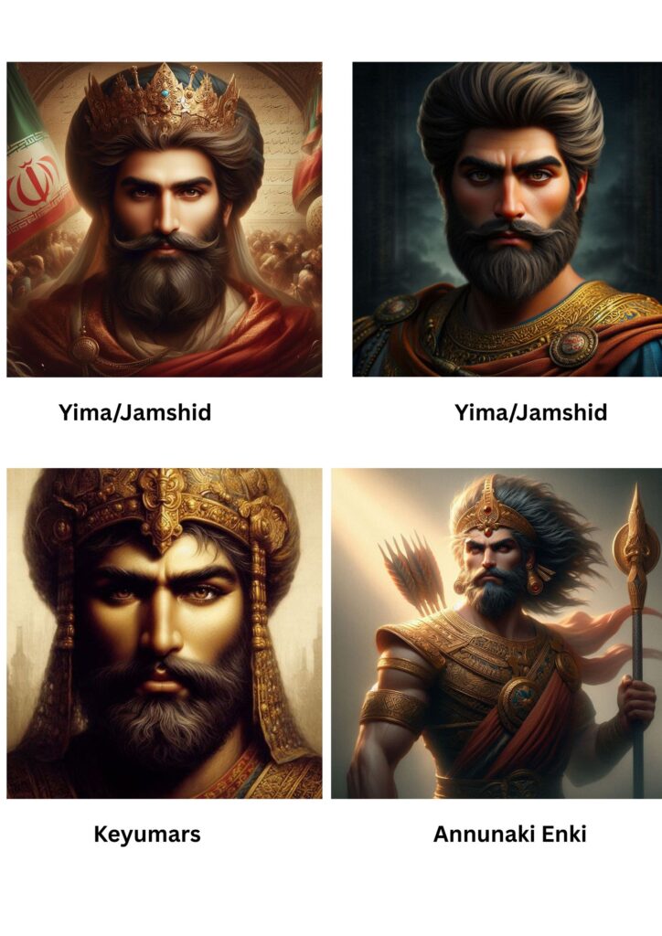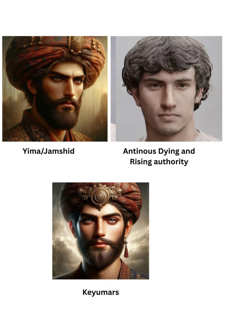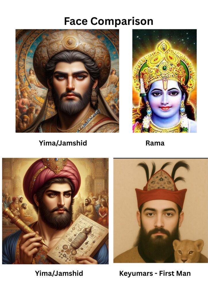 Conclusion – Yima/Jamshid Known as a First man and taught knowledge of civilizations after flood, was He the same Androgynous dying and Rising authority who is responsible for restoring knowledge of civilizations after flood and whose face remains the same in every birth as per Bhagvadgita verse 4.6, as well as Face of Yima/Jamshid match with Other possible births of this Androgynous authority.