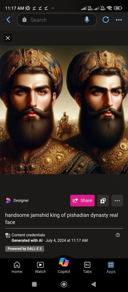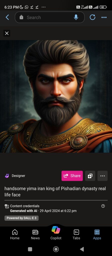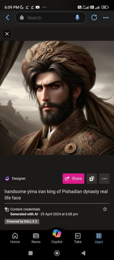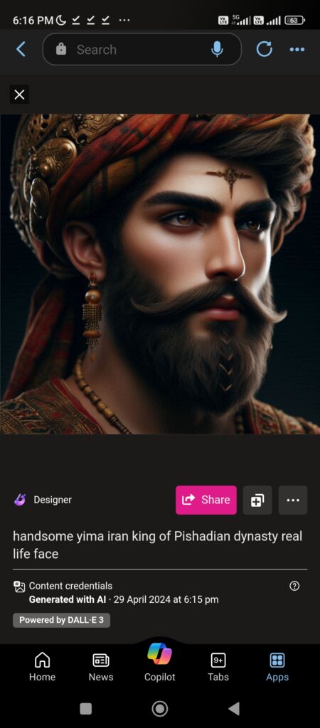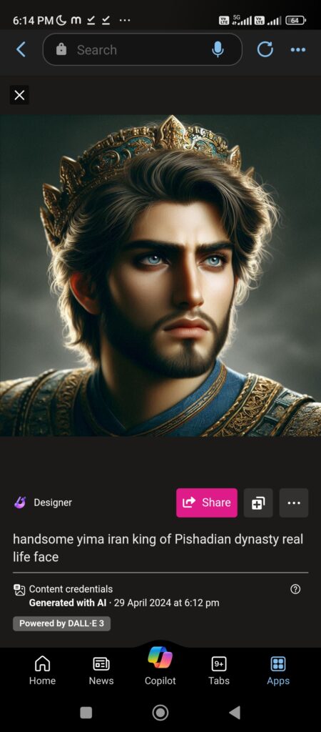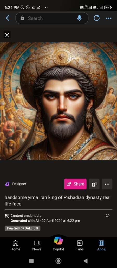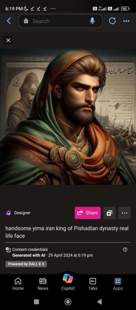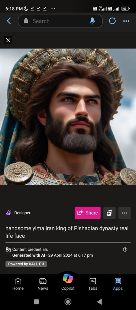 Yima/Jamshid Face reconstruction through Microsoft Bing AI software