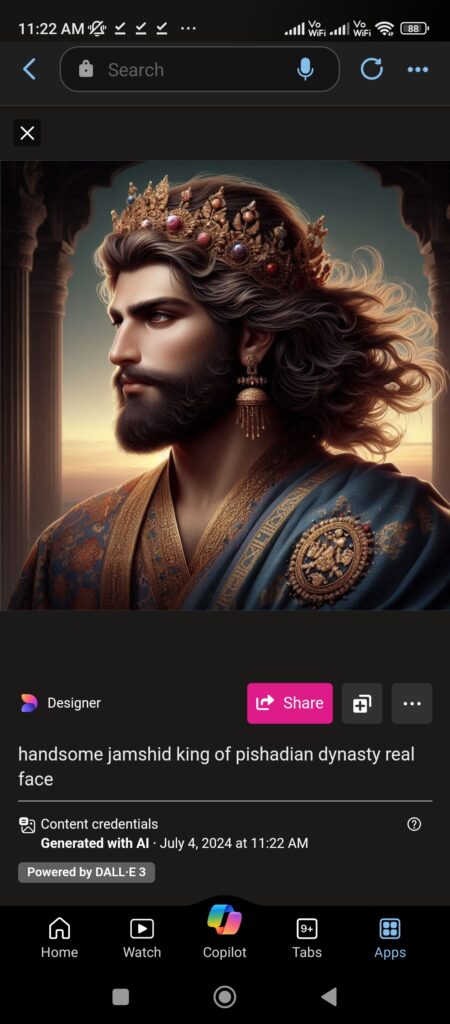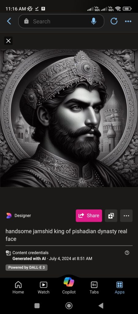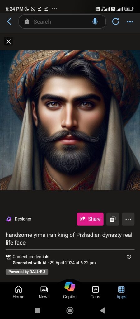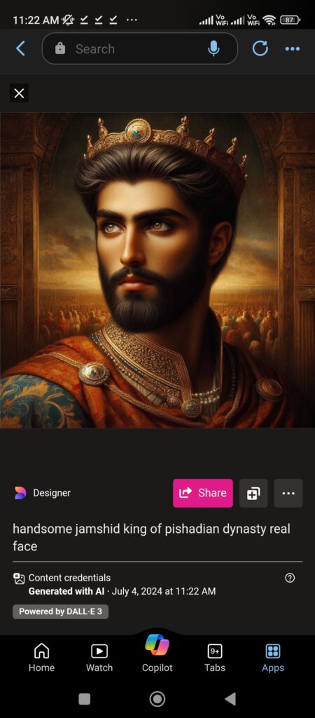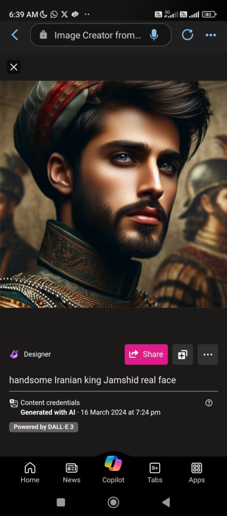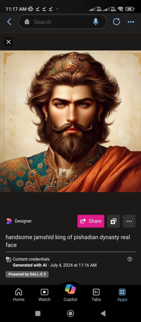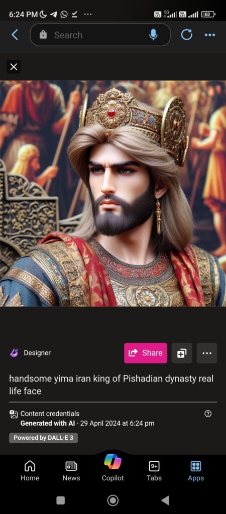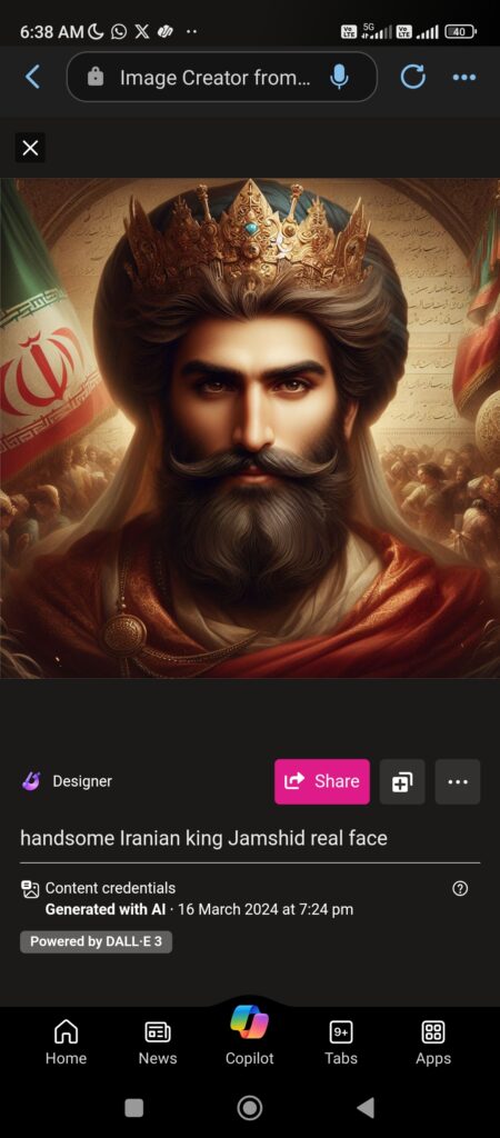 Yima/Jamshid Face reconstruction through Microsoft Bing AI software