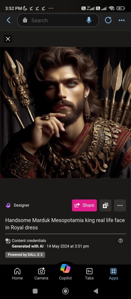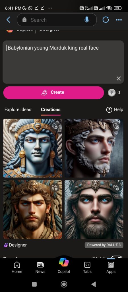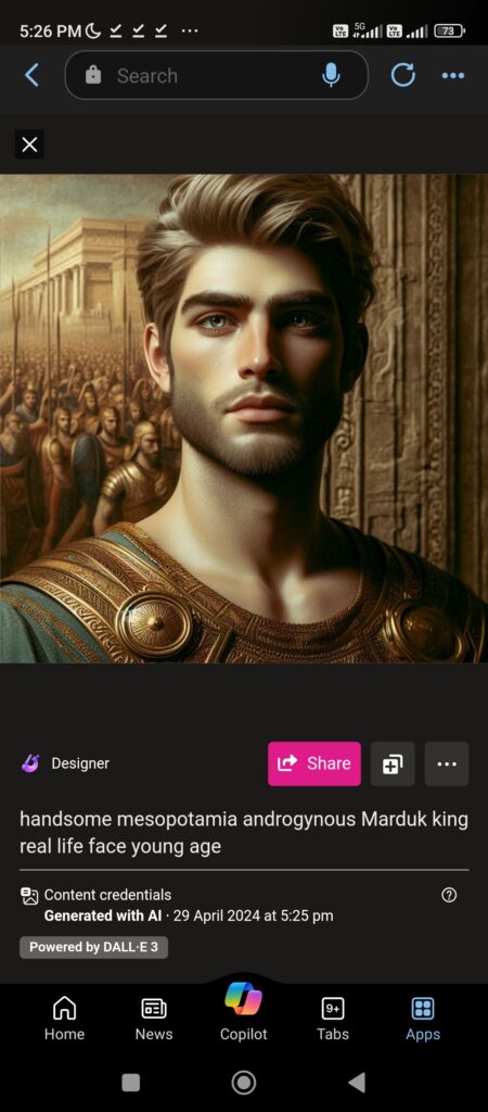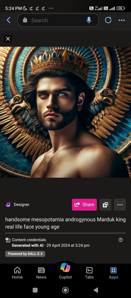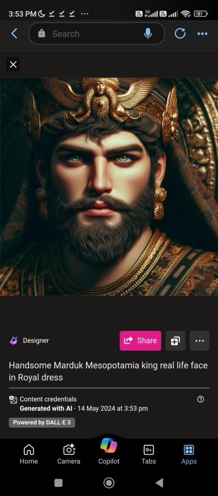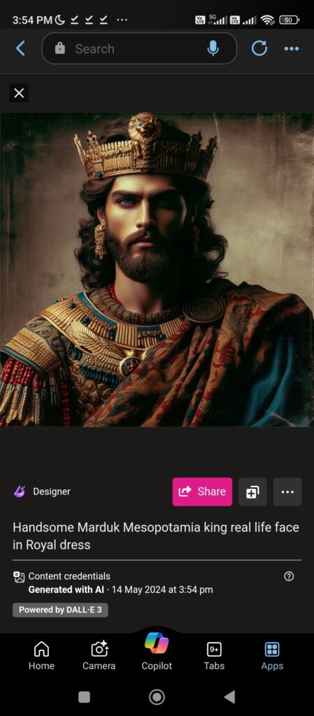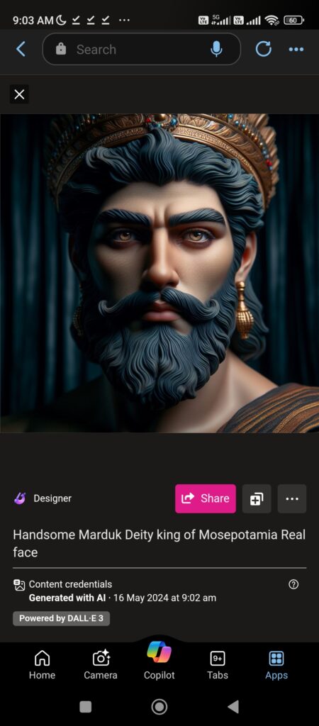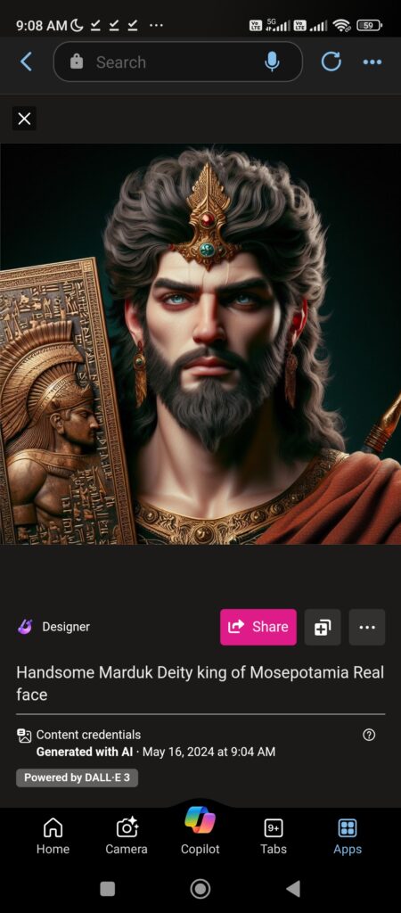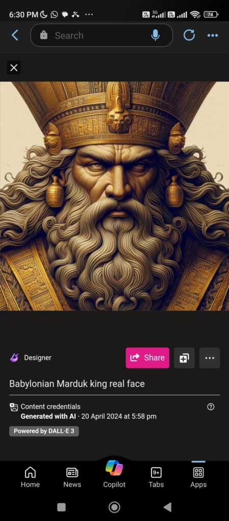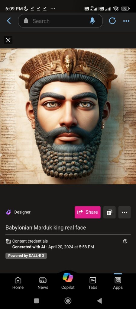 Annunaki Marduk face reconstruction through Microsoft Bing AI software