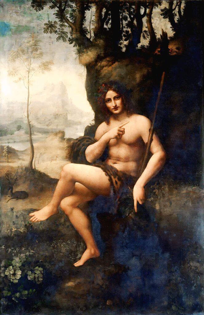 Below is the original painting of Dionysus by Leonardo da Vinci, where as Western History tells us various incarnation of this Androgynous Dionysus (Bacchus) dying and rising Deity.