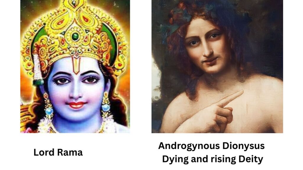 Here you can see, Face of Shri. Ram, who as per indian hindu beliefs consider incarnation of Trigunatit Vishnu, And face of Western Androgynous Dionysus dying and rising Deity is exactly same.